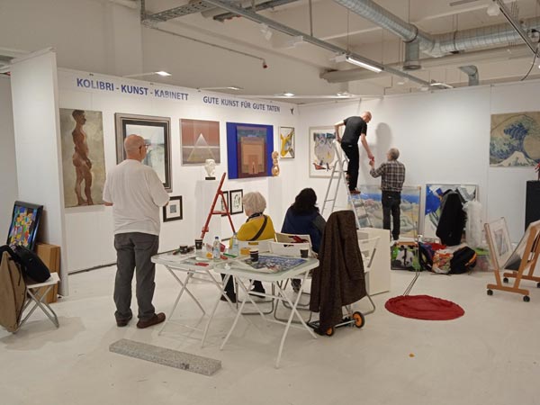 Am Ende aber waren es doch nur ein paar kleinere Werke, die tatsächlich neue Besitzer*innen finden konnten, während die größeren und teureren Bilder erst einmal nur fotografiert wurden. So bleibt aber zumindest die Hoffnung auf einen Nachverkauf, denn unser Angebot ist auch weiterhin auf deer Website www.kolibri-kunst-kabinett.de zu finden.