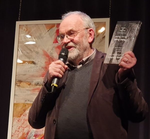 Die abstrakten Wund-Bilder des Künstlers Walter Raum, eigens für diesen Abend ausgestellt und ebenso als großes Triptychon auf der Bühne präsent, verliehen dem Raum eine einzigartige Atmosphäre. Raum verarbeitet in seinen Werken nicht nur seine eigenen Kriegserfahrungen, sondern auch den schmerzhaften Versuch, mit der Last seiner Schuld einen Weg zurück in die Gesellschaft zu finden. Sie begleiten auch eine besondere Buchausgabe von Borcherts Drama, herausgegeben von seinem Sohn Tobias Raum, die an diesem Abend auf großes Interesse stieß.