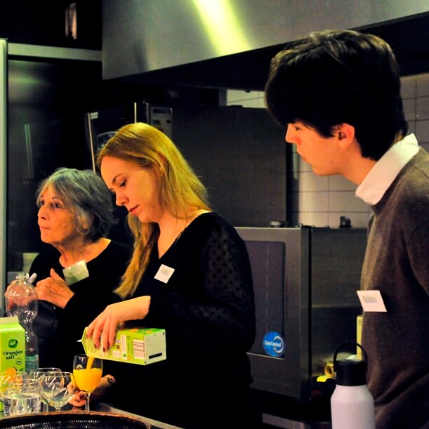 Im Anschluss verweilten viele Gäste noch lange im Foyer, suchten das Gespräch miteinander und den Künstler*innen. Immer wieder hörte man Dankbarkeit für diesen besonderen Abend, für die konzentrierte Stille während der Lesung, die Offenheit des Publikums und die Kraft des künstlerischen Zusammenspiels. Auch die Schauspieler*innen und Masako Ohta zeigten sich begeistert und lobten die tiefe Aufmerksamkeit im Saal. Spontan äußerten sie den Wunsch, die Lesung unbedingt zu wiederholen.